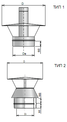 Верхнее окончание коаксиального дымохода с грибком и конструкцией для забора воздуха